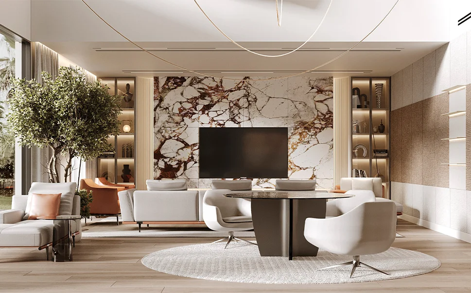 As Italian luxury furniture design evolves, there is a clear shift toward distinctive materials, with open-pored marble and richly textured wood creating a luxurious, organic feel. Contrasts between textures and finishes further enhance sophistication, adding depth and visual intrigue. This interplay defines modern Italian luxury furniture, blending timeless appeal with a curated touch.